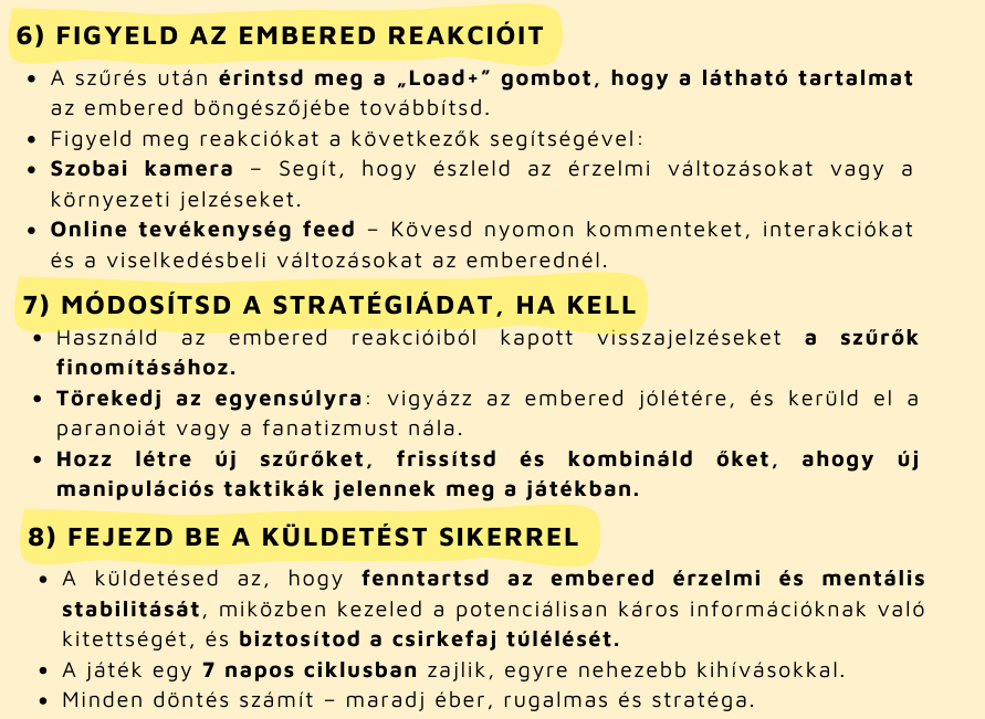 A gyakorlati részekben olyan megbízható forrásokat és eszközöket mutattunk be, amelyek segítenek a mindennapi tényellenőrzésben: fact-checking oldalak, deepfake scanner-ek, valamint tanórai alkalmazásra alkalmas módszertani példák. A harmadik leckében az ELTE Tényellenőrzés Kutatócsoport óravázlatai adtak konkrét, azonnal alkalmazható pedagógiai kapaszkodókat, míg a záró lecke a Chicken Intelligence Agency (Ch.I.A.) módszertanán keresztül mutatta meg, hogyan lehet a fact-checking készségeket játékos, motiváló és élményalapú formában fejleszteni.