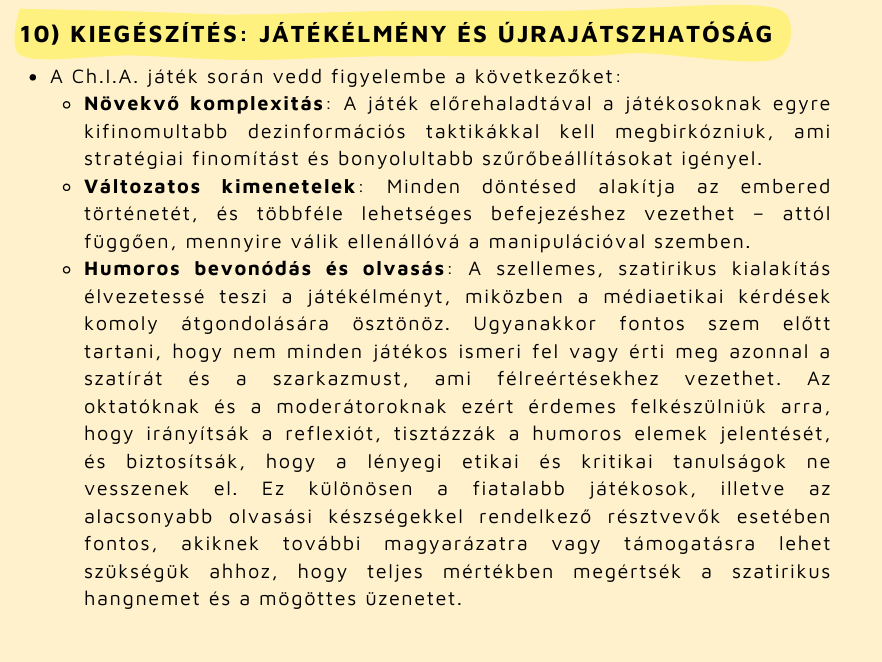 Ebben a leckében bemutatjuk a Ch.I.A. alapötletét, működését és pedagógiai jelentőségét, valamint azt is, hogyan építhető be egyszerűen tanórába vagy projektmunkába. A cél, hogy a pedagógusok egy olyan módszert kapjanak a kezükbe, amely élményszerűen fejleszti a diákok médiaműveltségét, és hosszú távon is hozzájárul a tudatos online tájékozódáshoz.
